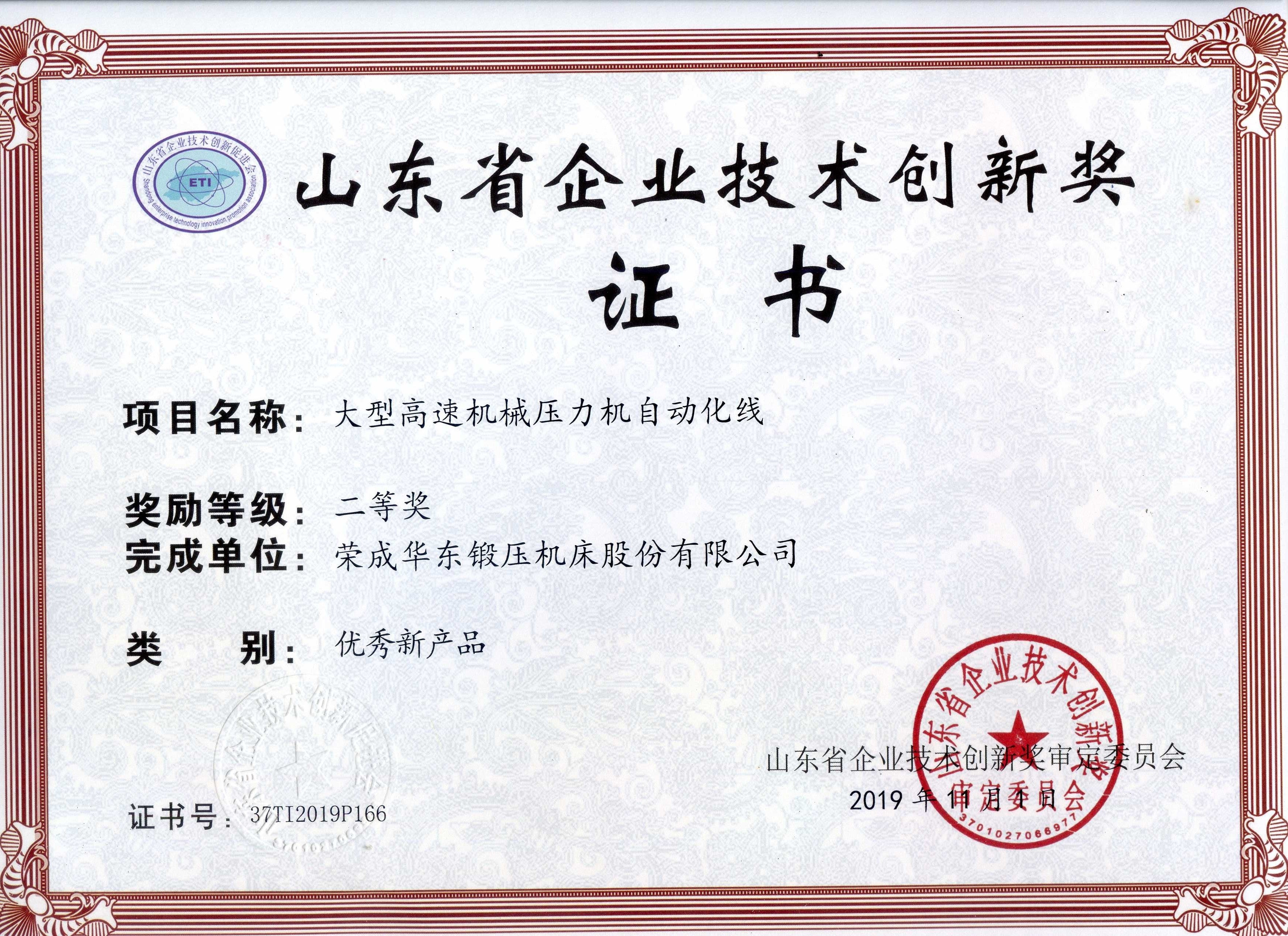 山東省企業(yè)技術(shù)創(chuàng)新獎-乘用車輪輻閉式單點壓力機生產(chǎn)線